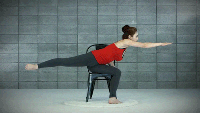 动作要领:坐在椅子或沙发边缘,背部不要支撑在椅子上,同时全程保持腿部悬空,脚尖绷直。上肢双手依靠椅背,下肢做悬空骑车动作,用手肘去触碰另一边的膝盖,交替进行。重复10~15个。