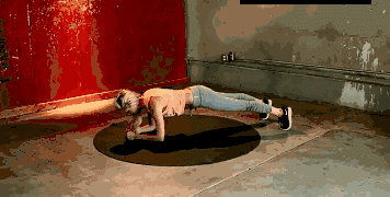 双臂曲肘90度撑在瑜伽垫上,双腿并拢伸直,且脚尖撑住地面,使身体呈一条直线,保持背部挺直,收紧腹部,然后将臀部微微向前抬高,再放低。此动作反复进行1分钟。