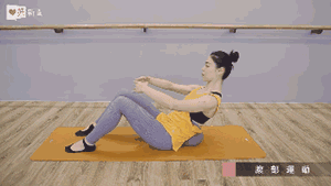 坐在瑜伽垫上,双脚打开与肩同宽,垫一个抱枕在尾椎处,双手抱圆,利用腹部的力量将身体往上提。