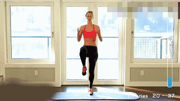 双脚并拢站直,双手向头顶上方抬高,保持背部挺直,收紧腹部,然后使双腿交替屈膝向上抬高,同时双臂曲肘向下压低。此动作可根据自身情况加快速度。