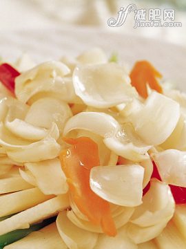 功效:西芹是一种营养价值十分丰富的食物,它几乎包含了各种丰富的营养价值成分。而西芹中含有丰富的钙质可以很好地帮助减少身体内积聚的水分。除此之外,西芹中可以分离一种碱性成分,因此可以在体内帮助进行有效的消化进程,让身体排出多余的废物。百合,它不但是一种极具观赏性的花,它本身含有的黏液质对于皮肤有良好的养颜美容之效。因此这道西芹百合是很多MM都喜欢的一种健康瘦下半身的食物。