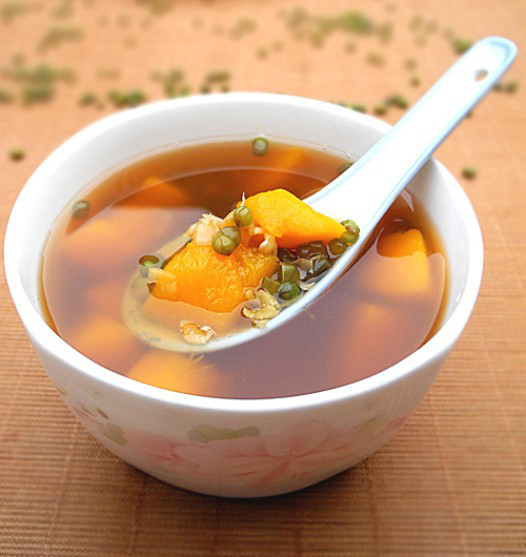 绿豆甘凉,清暑、解毒、利尿;配以南瓜生津益气,是夏季防暑最佳膳食。而且两则还富含膳食纤维、低脂肪特点所以具有减肥功能。夏季吃绿豆汤还有助于清凉解暑呢!