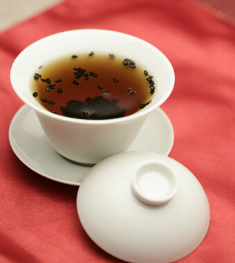 原料:山楂片,决明子(捣碎)各15克。菊花6克。