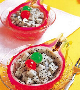 火龙果含有维生素E和一种更为特殊的成分——花青素。它们都具有抗氧化、抗自由基、抗衰老的作用,还能提高对脑细胞变性的预防,抑制痴呆症的作用。