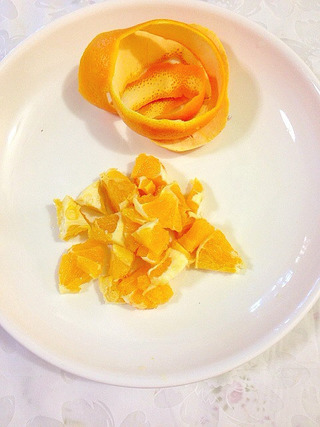 5、橙子修去外皮和白色的皮,将果肉切小块