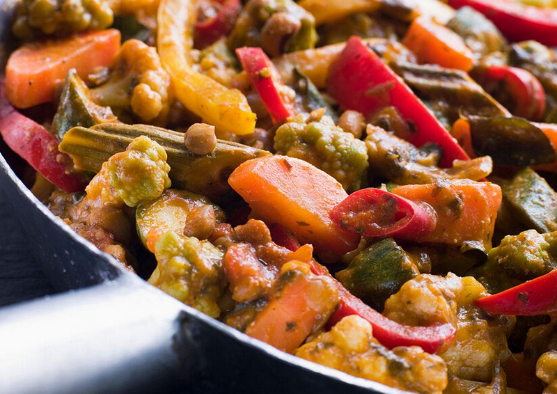 3)锅中倒入油(油量比平时炒菜的量要大些),放入蒜末,干葱片,炒香后改成小火,分别加入姜黄粉,咖喱粉,接着倒入水,椰浆搅匀,放入洋葱,胡萝卜,土豆,西兰花,辣椒丝和芹菜丝,搅匀后加热翻炒2分钟左右,直到汤汁变粘稠。