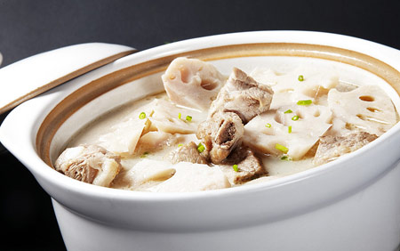 (3)水煮滚,放入全部材料,大火煮十分钟,转文火煮二各半小时,加入盐或鲜味露调味即可食用。