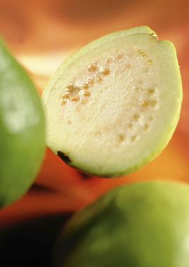 番石榴又称芭乐,是一等一的减肥食品。番石榴中所含的钙、磷、铁等元素不仅能促进儿童身体发育,而且所含的微量元素对肥胖症有很好的疗效,因此番石榴又被减肥的人称为圣果。番石榴皮中含有丰富营养,其种子中含铁量更胜于其它水果,所以,食用番石榴时最好能连皮、子一起食用。