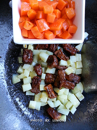 再把滚累了的胡萝卜加入土豆兄和牛肉君的队伍中来~
