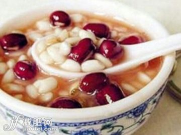 做法:将生薏仁、红豆洗净浸约1-2小时后沥干备用,将薏仁放入锅中并加入适量的水煮至半软,然后放入红豆煮熟,再放入冰糖搅拌,待其完全溶解后熄火即可食用。