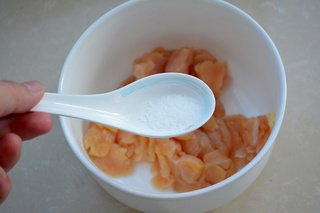 二分之一生抽(鸡胸肉炒熟太白,点点生抽调味又调色)