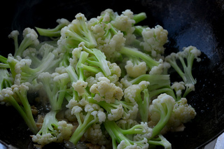 放入菜花翻炒