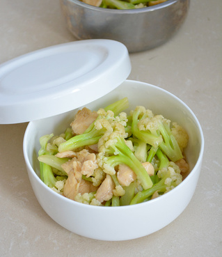 “菜花,是一种十字花科蔬菜,为甘蓝的变种。富含维生素B群、C群。是一种粗纤维含量少,品质鲜嫩,营养丰富。 鸡胸肉有助改善记忆,少脂肪,咱们胖胖人群解馋福音啊”