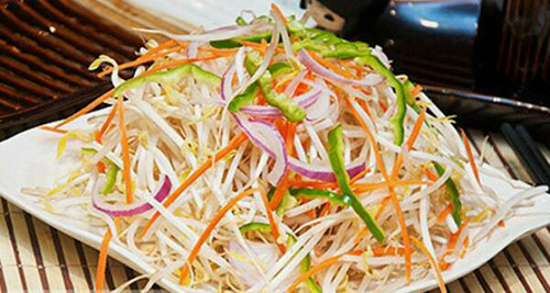 食材:绿豆芽菜150克,芹菜50克。