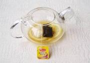 壶中放入几片腌制好的柠檬,再放入一包红茶,冲入开水即可。