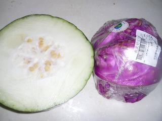 冬瓜 (适量) 紫甘蓝 (适量) 白醋 (适量) 白糖 (适量)
