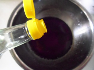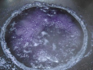 紫甘蓝剥两片冼净,放料理机加点水打成汁