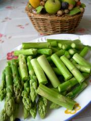 挑选芦笋的四窍门:看颜色 通体翠绿,看笋穗 密密实实,看粗细 上下均匀,掐指印 清清爽爽。
