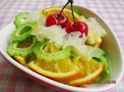 泡发银耳 80克 苦瓜 100克 甜橙 1个 蜂蜜 1勺 白醋1勺 橄榄油 1勺
