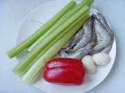 西芹 鲜百合 红彩椒 虾仁 鸡蛋清 1/2