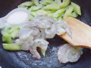 材料:西芹、鲜百合、红彩椒、虾仁、鸡蛋清1/2