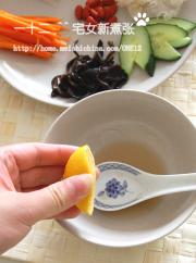 番茄一只 黄瓜一根 银耳 一小把 木耳 一小把 胡萝卜一只 鱼露 一勺 柠檬汁 2勺