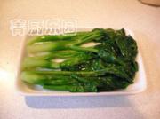 芥兰汆一下马上捞起摆盘;(有的喜欢捞起后浸泡在冰开水里,我也试过,但我觉得那样口感没有直接摆盘的好吃,也有点不卫生)。