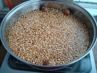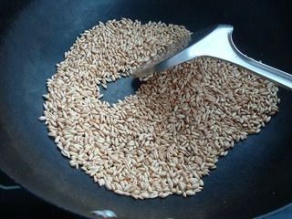 3.把糙米炒到金黄色,闻到糙米的香味以后就可以关火了。