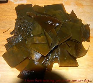 1、海带泡发,洗净,切成小片。
