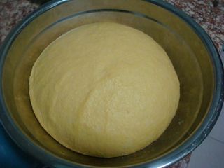 3.加入黄油揉成具有延展性的面团,发酵至2倍大。