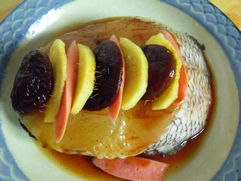 轻体排毒菇香蒸鳕鱼的调料:蔬菜(适量) 生姜(适量) 盐(三茶匙) 胡椒粉(适量) 白醋(一汤匙) 蒸鱼豉油(一汤匙)