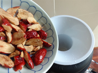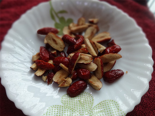 接着加入红枣和熟花生。