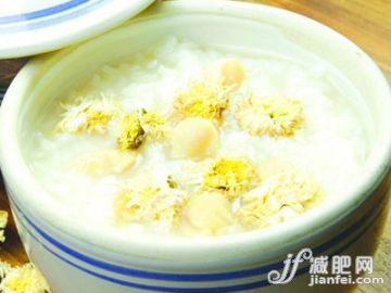 做法:取银耳、菊花各10克,糯米60克,将材料放进锅内,减火煮粥,粥熟后调进这量蜂蜜即可食用。