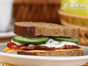 做法:用不粘锅煎蛋(无须放食用油),再取两片全麦切片面包,还可按个人口味加火腿,生菜和脱脂沙拉酱,用时令水果调配果汁。