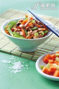 做法:芹菜去叶切段,洗净,用开水烫过。香干切丝,大火快炒芹菜,再加入肉丝、少许盐、酱油。