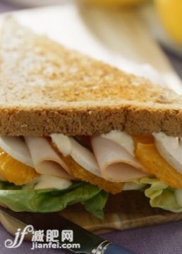 做法:用不粘锅煎蛋(无须放食用油),再取两片全麦切片面包,还可按个人口味加火腿,生菜和脱脂沙拉酱,用时令水果调配果汁。