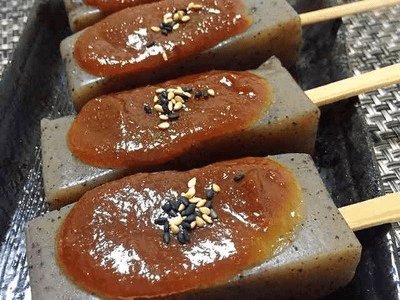 最后再在魔芋上放上酱汁,撒上芝麻。