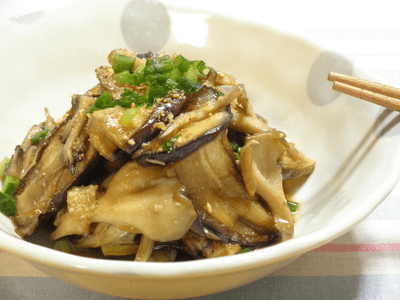在锅中加入少许橄榄油,待油热以后加入两勺蒜蓉。炒香蒜蓉后加入碗中调好的酱汁,加热半分钟以后再放入茄子。翻拌均匀后加入少量葱花,关火装盘。