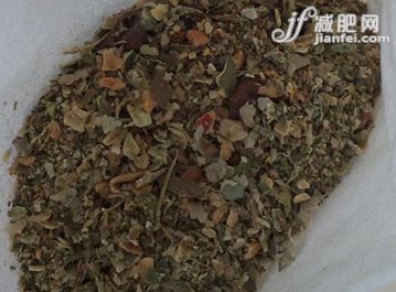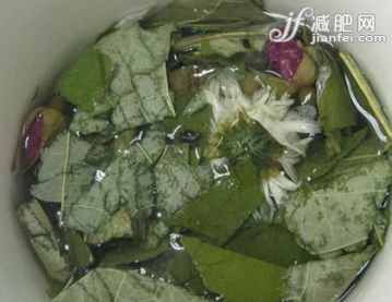 材料:荷叶3g,决明子6g,制大黄3g,首乌3g,扁豆3g,玳玳花3g。