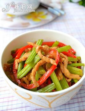 原料:芹菜300克、香干3块、盐1茶匙(5克)、白糖1茶匙(5克)。