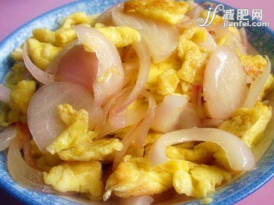 1、洋葱去皮、洗净,切成丝;鸡蛋去壳放在碗里,加盐和少许胡椒粉打匀,炒锅里放油烧热,然后倒入洋葱炒片刻,装在盘子里。