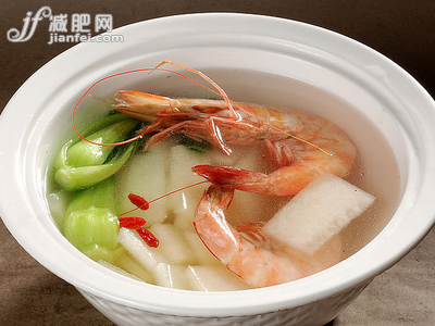 做法:所有材料洗净,冬瓜去皮去籽切成块,葱、香菜切段,姜切丝;锅里放入清水、葱段、姜丝烧开,分别下海虹、花蛤汆至开口捞出;再将鲜虾入锅汆至虾身弯曲,虾壳变红后捞出;将锅中的汤汁过滤后再重新放入锅中,加入冬瓜块炖煮约10分钟左右至冬瓜酥软;将汆烫过的鲜虾、海虹、花蛤放入冬瓜汤里,调入盐和鸡精;煮开后滴入香油,撒上香菜段即可。