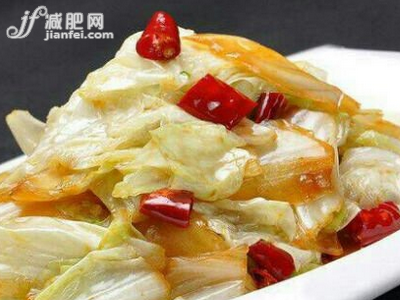 醋溜白菜,以白菜心为主料,青、红辣椒块、海米为配料。白菜含有丰富的钙、铁、无机 盐和维生素C等,并且释放热量较多。加入青、红辣椒块、海米,再醋溜,不仅增加了钙、磷等无机盐含量,而且使菜肴具有色、香、味、形的特色。醋能保持白菜 中的维生素C不被破坏,此外,醋与糖结合,使白菜酸甜爽口。白菜中所含蛋白质接近人体所需要的蛋白质,而脂肪含量极低,无机盐和维生素含量丰富,是肥胖者祛脂减肥的理想食物。