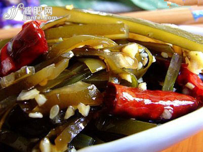 1、隔天先将海带用水泡24小时,中间要换两次水。洗净后切丝沥干。