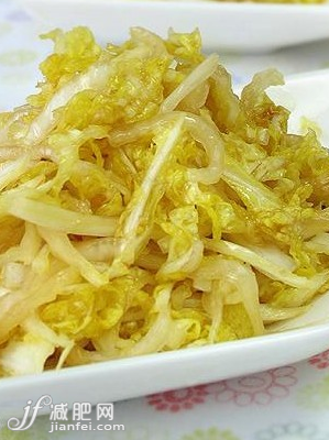做法:将500克圆白菜加少许盐,放入开水中焯一下。将焯好的菜放凉后挤干水分,切成块,再把一杯醋、1/2杯高汤、两勺酒、1/2勺盐混合后煮开制成汤料。等汤料变凉后和圆白菜一起倒入密封瓶内储存一天即可食用。圆白菜含有丰富的多种维生素和膳食纤维,能增强肠胃蠕动。