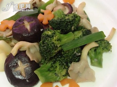 材料:鲜蘑菇250克,香菇50克。精盐、白糖各少许,植物油、水淀粉各适量。