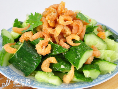 ②取金钩25克.盛小碗中,倒入少许清水,上笼蒸酥软,加入少量香油、盐,和匀后连汁水一起淋于黄瓜上即成。黄瓜脆嫩,金钩鲜香。