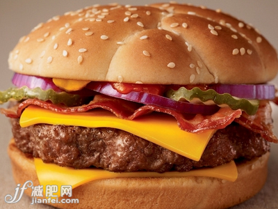 汉堡是外食族的爱,而汉堡的热量高,里面的肉油脂也高,而且,吃汉堡的时候人们喜欢配上一杯可乐或其他饮料,如此一来,热量叠加起来,实在高得吓人。