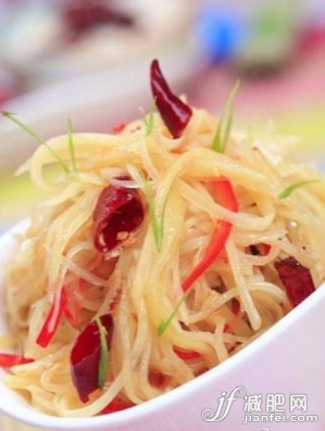 做法:土土豆片切成细丝,用清水将切好的土豆丝泡去淀粉,将葱切末、辣椒剪成小段、蒜切末、红椒切丝、姜切末。锅内放油放入花椒,注意火不要太大,不能把花椒炸糊了。锅中留底油放入葱、姜、蒜末、辣椒段煸炒出香味,加入土豆丝,煸炒约2分钟后,将醋沿着锅边淋入继续翻炒土豆丝,放入红椒丝翻炒均匀。最后加葱花、适量盐、糖、鸡精调味即可。