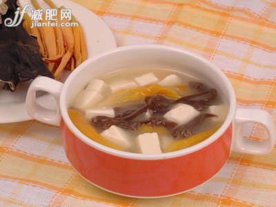 黑木耳里的卵磷脂在体内可使脂肪呈液态,比较利于脂肪在体内进行消耗,可以带动体内脂肪运动,使脂肪分布合理从而使人变得形体匀称。其中含有的纤维素能促进肠蠕动,促进脂肪排泄,有利于减肥。它所含的蛋白质、脂肪、糖类,不仅是人体必需的营养成分,也是美容的物质基础。豆腐含有的植物性微量元素极其丰富,有助于排出多余水分,提高消化功能,特别是针对腹部的脂肪尤其有效。豆腐含大量的植物性蛋白质,吃进肚里易饱经饿,是优点多多的减肥食物。